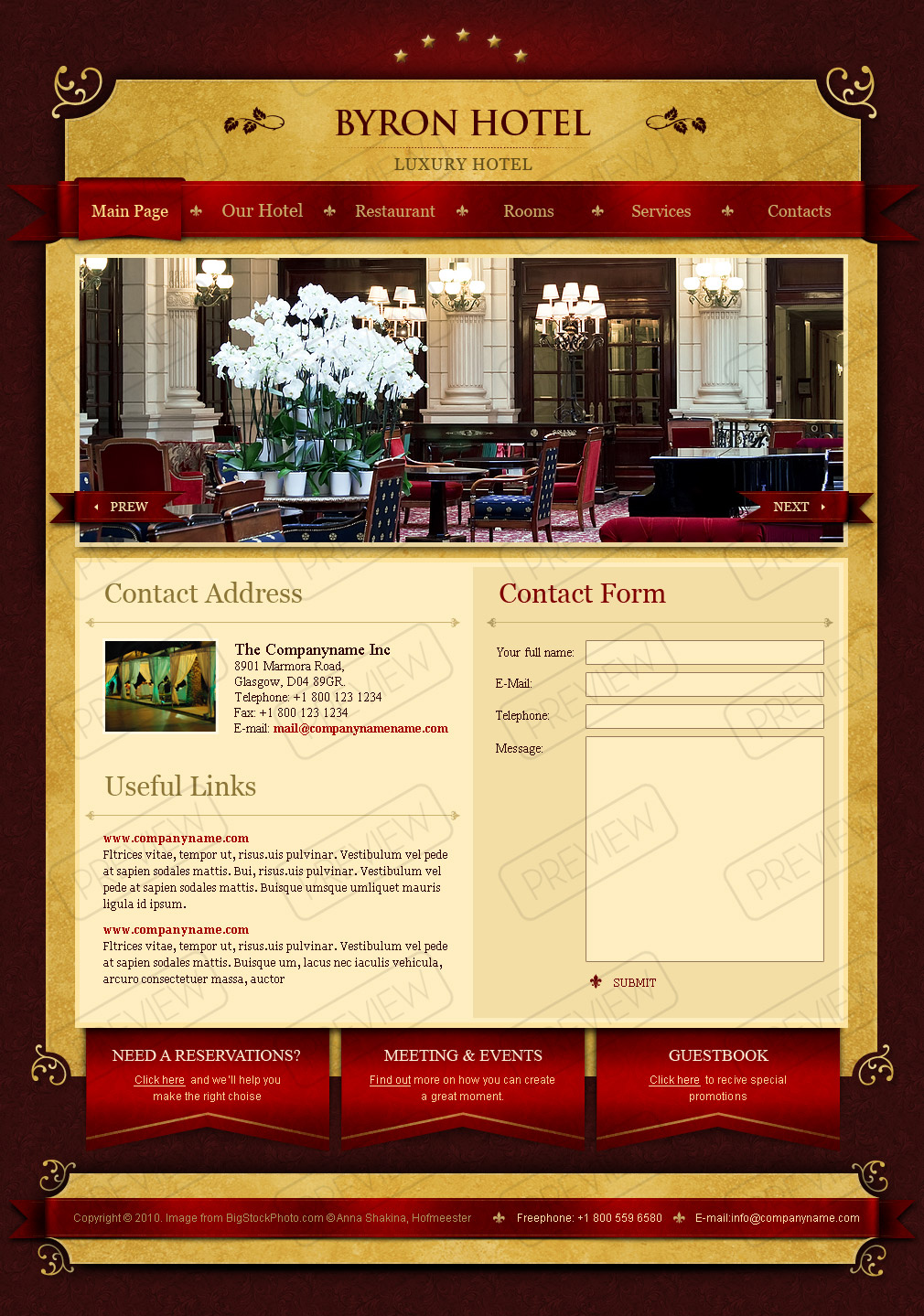 Inner pages: Main Page Our Hotel Restaurant Rooms Services Contacts