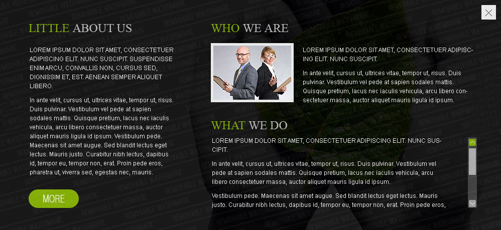 Lorem ipsum dolor sit amet, consectetuer adipiscing elit. Nunc suscipit. Suspendisse enim arcu, convallis non, cursus sed, dignissim et, est. Aenean semper aliquet libero. In ante velit, cursus ut, ultrices vitae, tempor ut, risus. Duis pulvinar. Vestibulum vel pede at sapien sodales mattis. Quisque pretium, lacus nec iaculis vehicula, arcu libero consectetuer massa, auctor aliquet mauris ligula id ipsum. Vestibulum pede. Maecenas sit amet augue. Sed blandit lectus eget lectus. Mauris justo. Curabitur nibh lectus, dapibus id, tempor eu, tempor non, erat. Proin pede eros, pharetra ut, viverra sed, egestas nec, mauris.